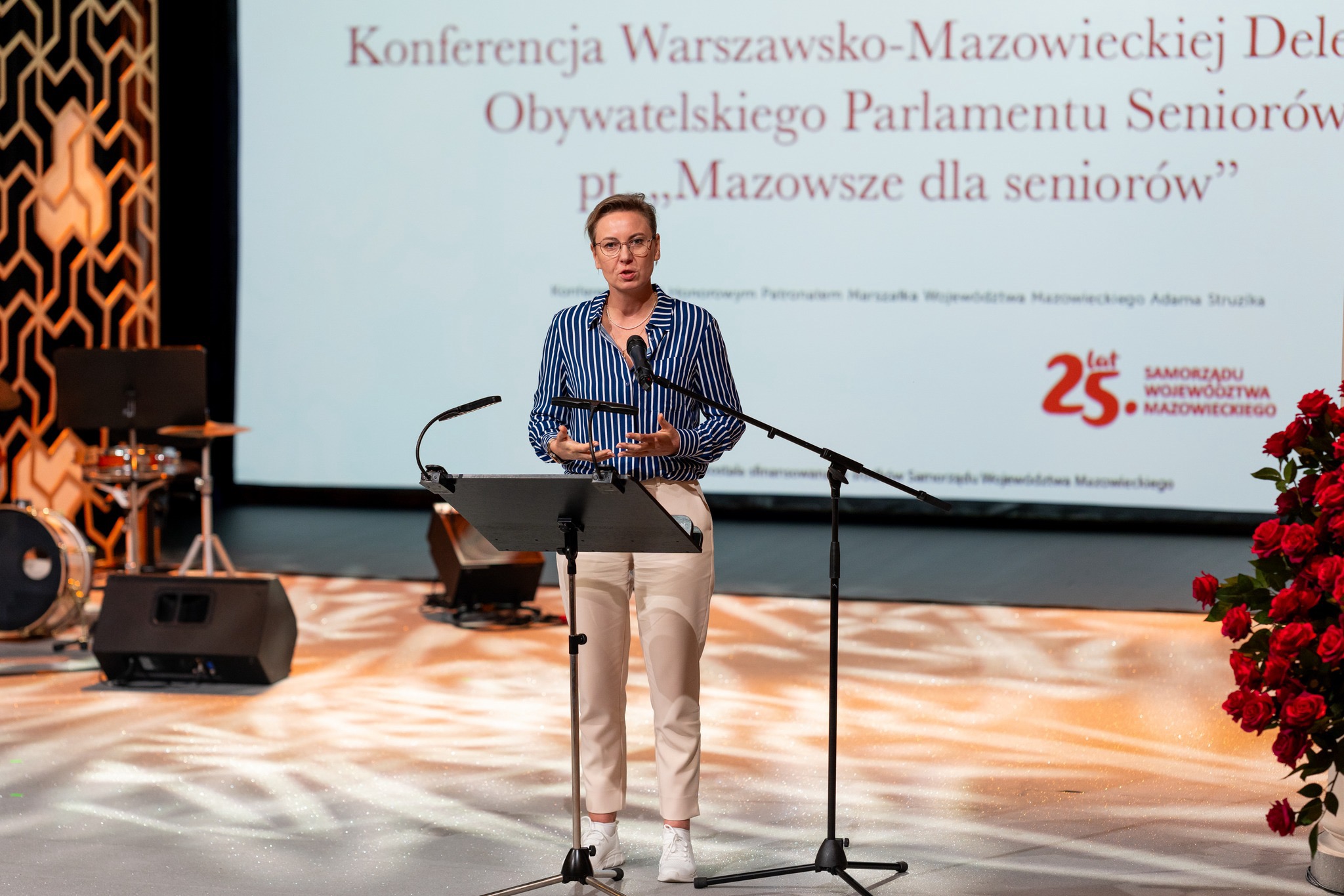 Pełnomocnik Marszałka Województwa Mazowieckiego ds. Polityki Senioralnej, którą pełni Dyrektorka Departamentu Zdrowia i Polityki Społecznej Agnieszka Gonczaryk – obszernie omówiła działania realizowane na rzecz seniorów przez Samorząd Województwa Mazowieckiego.
